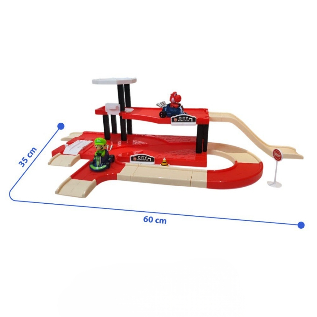¡Prepárate para la acción y la velocidad con esta emocionante Pista de Carreras Estilo Arcade/Garaje ! Inspirada en la emoción de los videojuegos de karts, este set multini vel ofrece horas de diversión, estimulando la imaginación y la coordinación mano-ojo en los más pequeños.